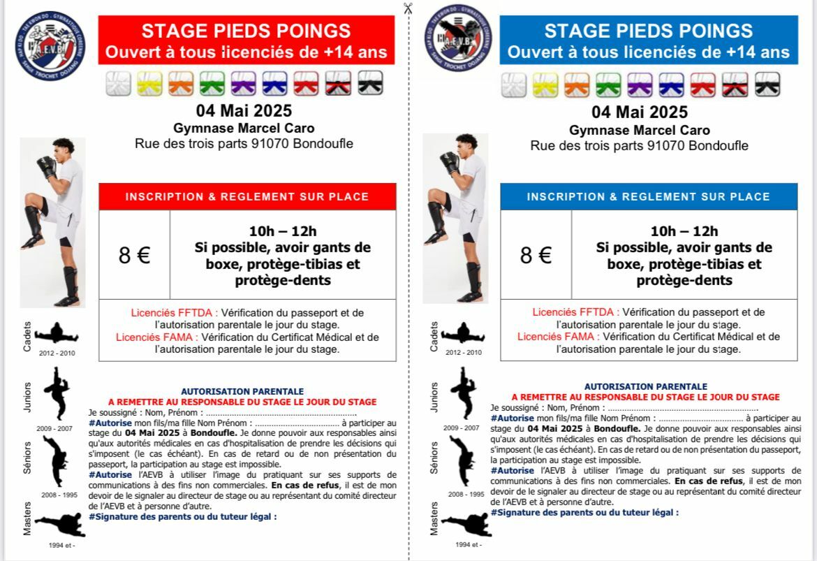 Stage pieds-poings à Bondoufle, le dimanche 04 mai 2025.