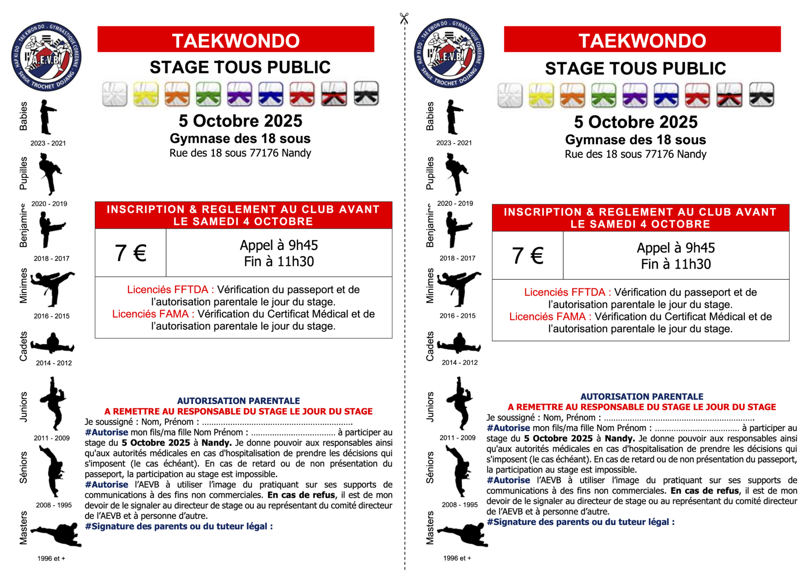 Stage Taekwondo dimanche 05 octobre à Nandy. Ouvert à tous. Passeport à jour.