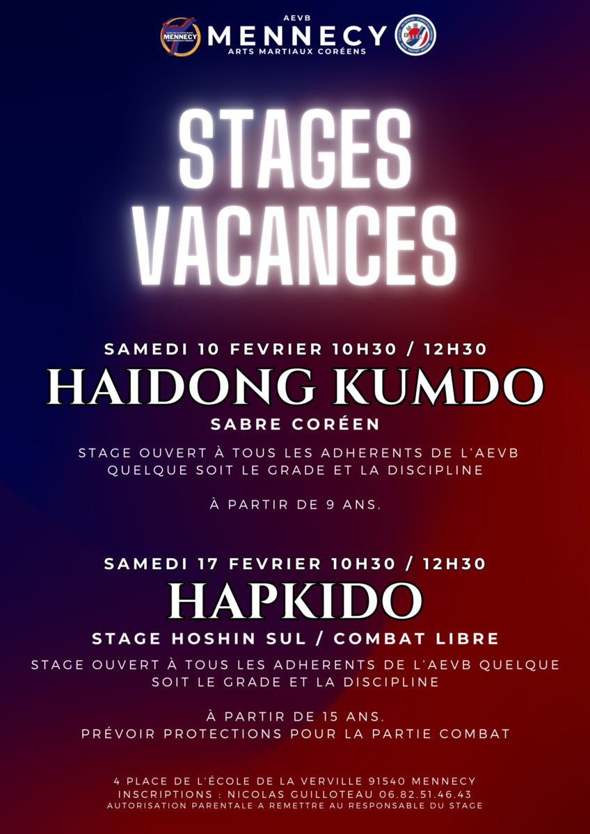 Stage ouvert à partir de 9 ans. Inscriptions sur place. Passeport à jour.