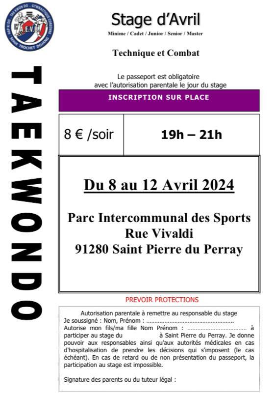 Stage ouvert à partir de la catégorie Minimes (né avant 2014). Inscriptions et règlements sur place. Passeport à jour.